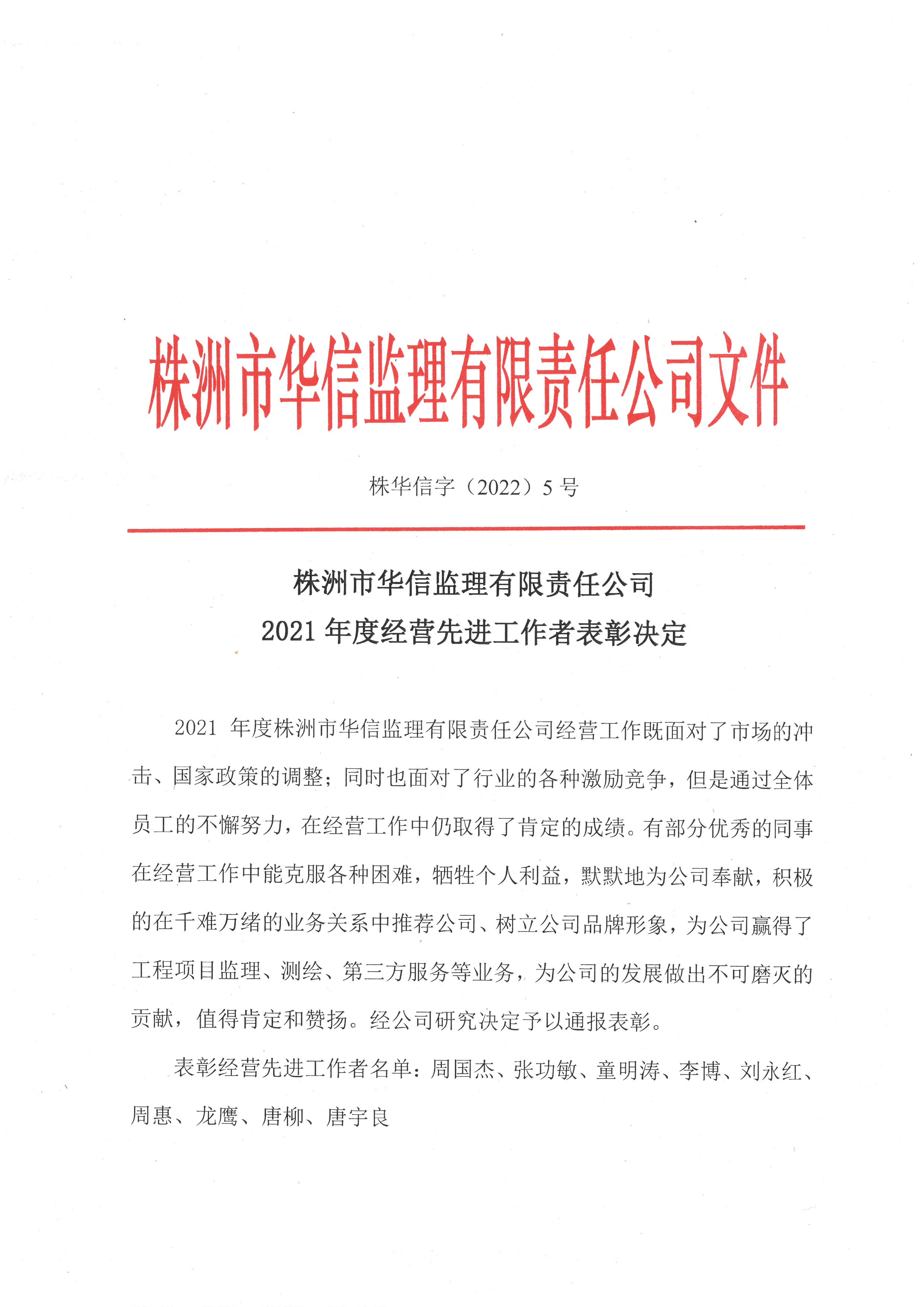 2021年度經(jīng)營先進(jìn)工作者表彰決定