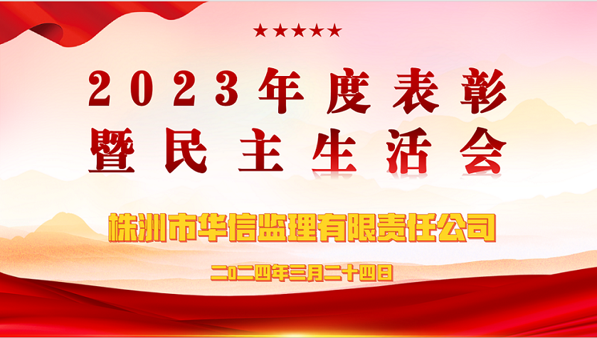 3月24日下午,株洲市華信監(jiān)理有限責(zé)任公司召開(kāi)“2023年度表彰暨民主生活會(huì)”。會(huì)議由周國(guó)杰董事長(zhǎng)主持,公司管理層、各項(xiàng)目總監(jiān)、部門負(fù)責(zé)人等30余人參會(huì)。